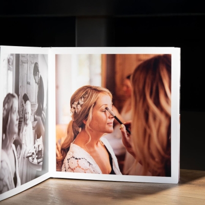 A lay flat photo album is made using a special kind of binding. This allows pages to lie flat when the book is open, meaning a seamless transition from one page to the next. These books are perfect for showcasing large, double-page photographs and they make a beautiful addition to your coffee table.