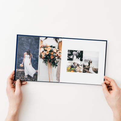 You’re aiming for quality over quantity. The pages of our lay flat albums are extra thick. So these photo books fit fewer photographs than our soft cover or hard cover books.
