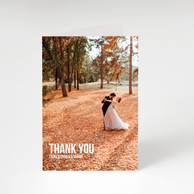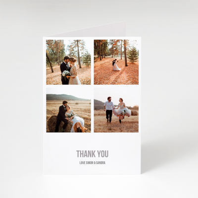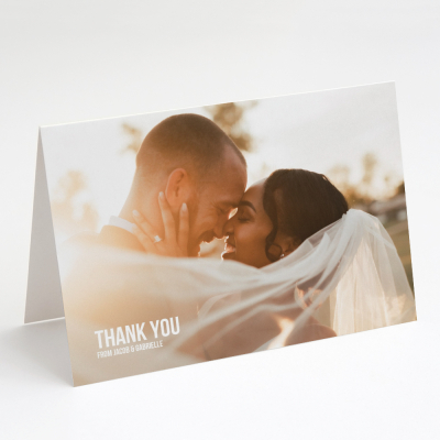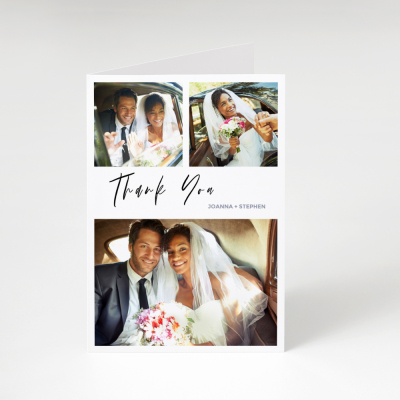 Alternatively, you can mismatch. This gives you total flexibility when picking out thank you cards. Just opt for your favourite design or pick a card that displays your chosen wedding photograph to perfection.